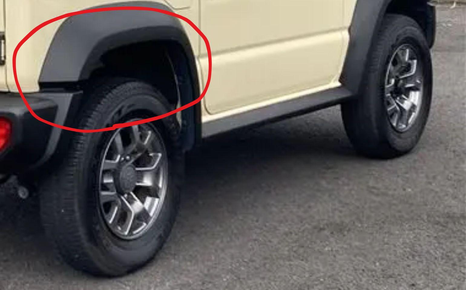 外観の最もわかりやすい違いが、オーバーフェンダーの有無です。ジムニーシエラは、ジムニーと比べてタイヤ周りがよりワイド(写真参照)になっており、その分フェンダーが外側に張り出しています。