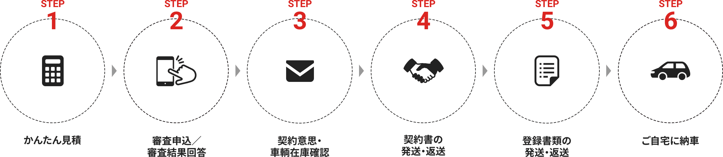また、車両の確保は先着順なので、審査や意思確認の手続きの間に売れてしまった場合は別の車両でもう一度、申し込みしていただく必要があります。
